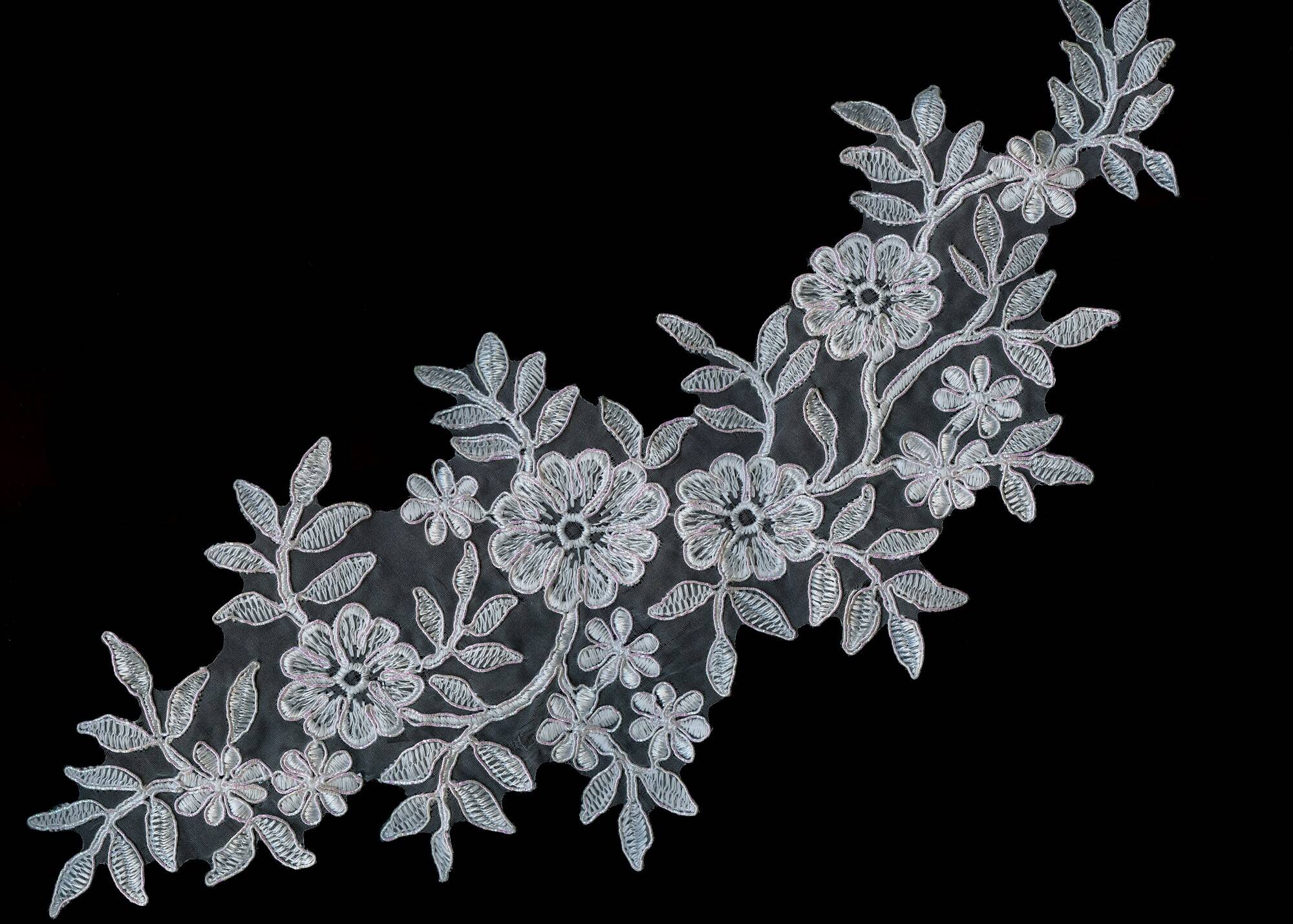 Аппликация с кордом в белом цвете станет прекрасным декором для платья, придавая ему изысканности и тонкого блеска. Перламутровые оттенки создают непревзойденный акцент, который подчеркнет красоту и стиль невесты. Аппликация придаст платью уникальный и утонченный вид, идеально дополняя свадебный образ. Приблизительный размер - 14х31см.