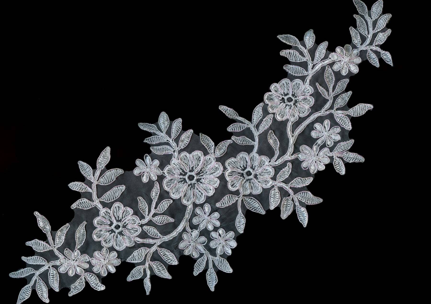 Аппликация с кордом в кремовом цвете. Цветочный рисунок поражает своей элегантностью и текстурной утонченностью. Приблизительные размеры - 12х35см.