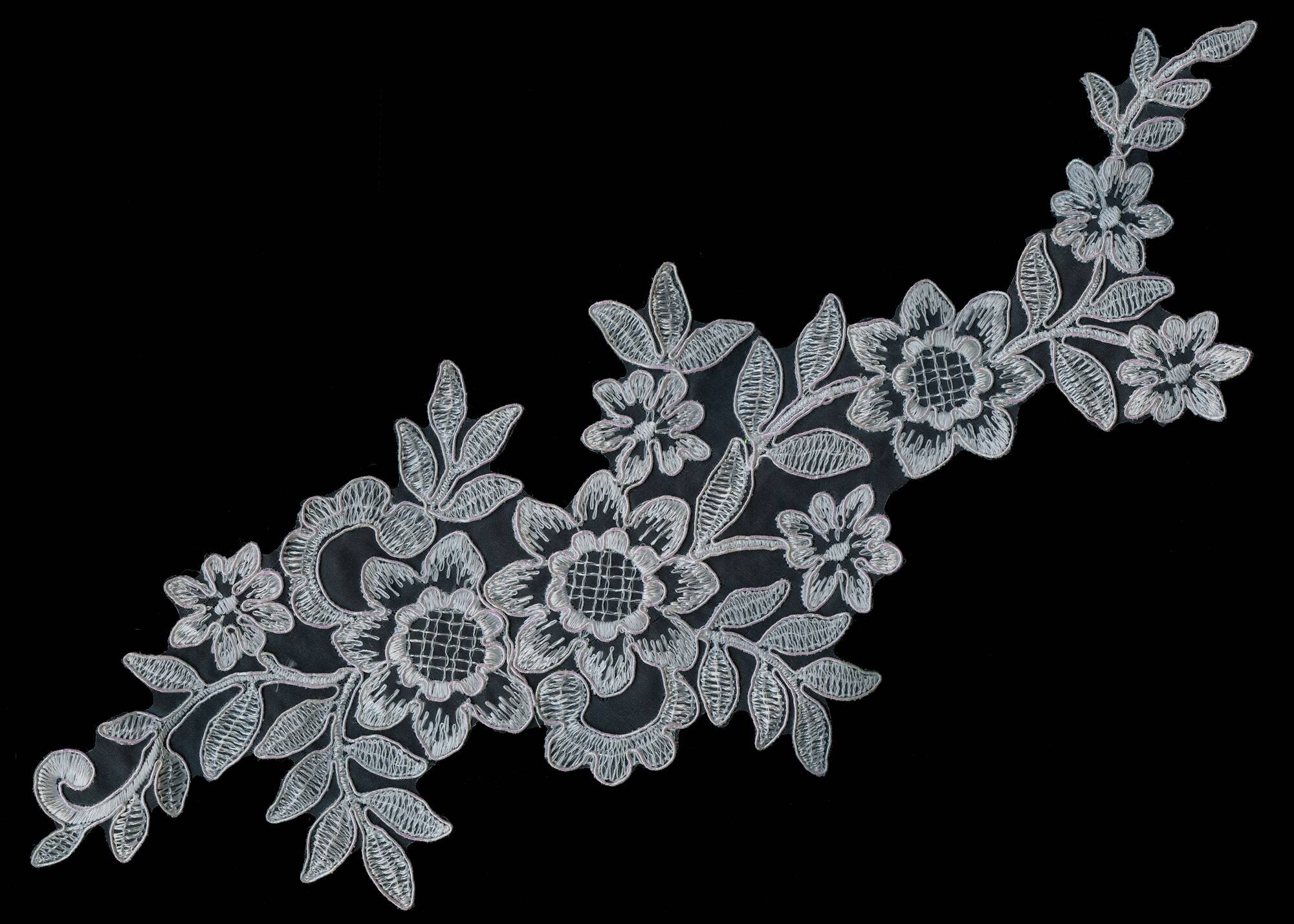 Аппликация с кордом в белом цвете станет прекрасным декором для платья, придавая ему изысканности и тонкого блеска. Перламутровые оттенки создают непревзойденный акцент, который подчеркнет красоту и стиль невесты. Аппликация придаст платью уникальный и утонченный вид, идеально дополняя свадебный образ. Приблизительный размер - 14х31см.