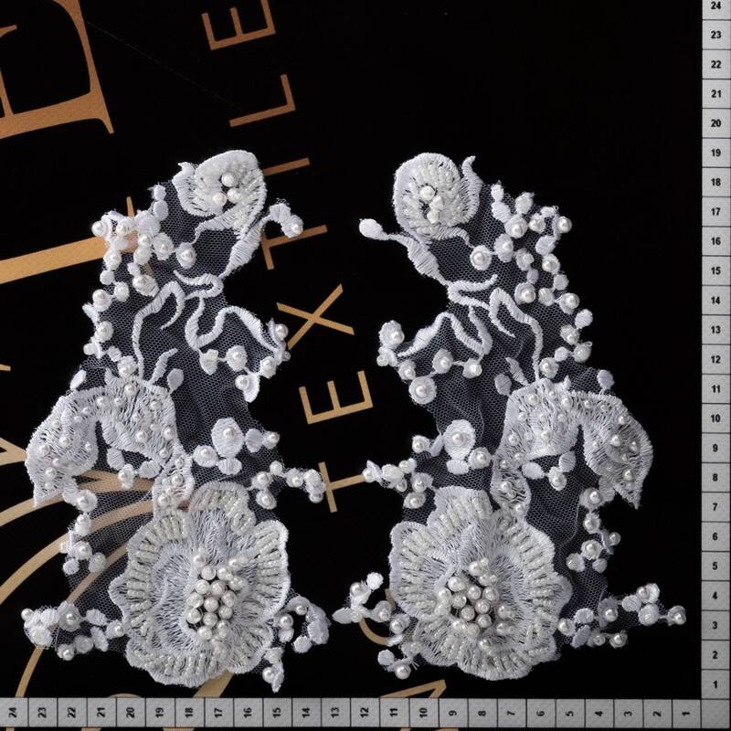 Аппликация, расшитая бисером и жемчугом в белом цвете, представляет собой впечатляющий узор с цветочным мотивом. Каждая деталь, выполненная с мастерством, создает элегантный и роскошный декор. Приблизительный размер - 12х18см.