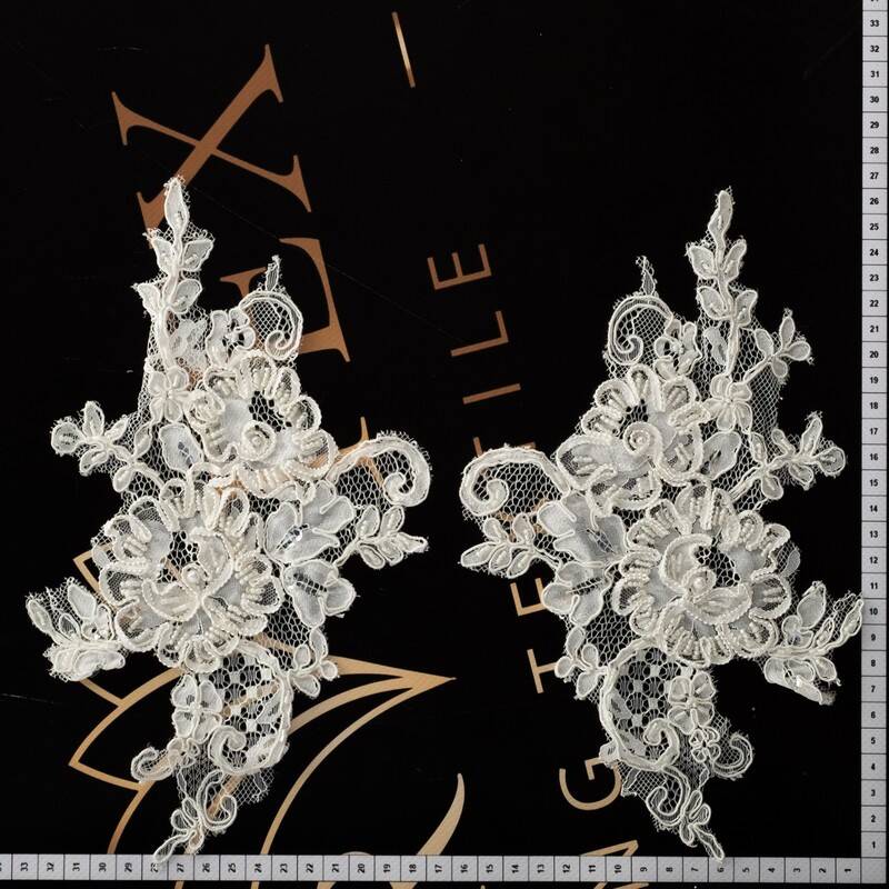 Расшитая аппликация молочного цвета поражает своей нежностью и изяществом. Эта аппликация может служить прекрасным декором для свадебных платьев, вечерних нарядов или творческих проектов, где важна изысканность деталей. Приблизительный размер - 16х26см.