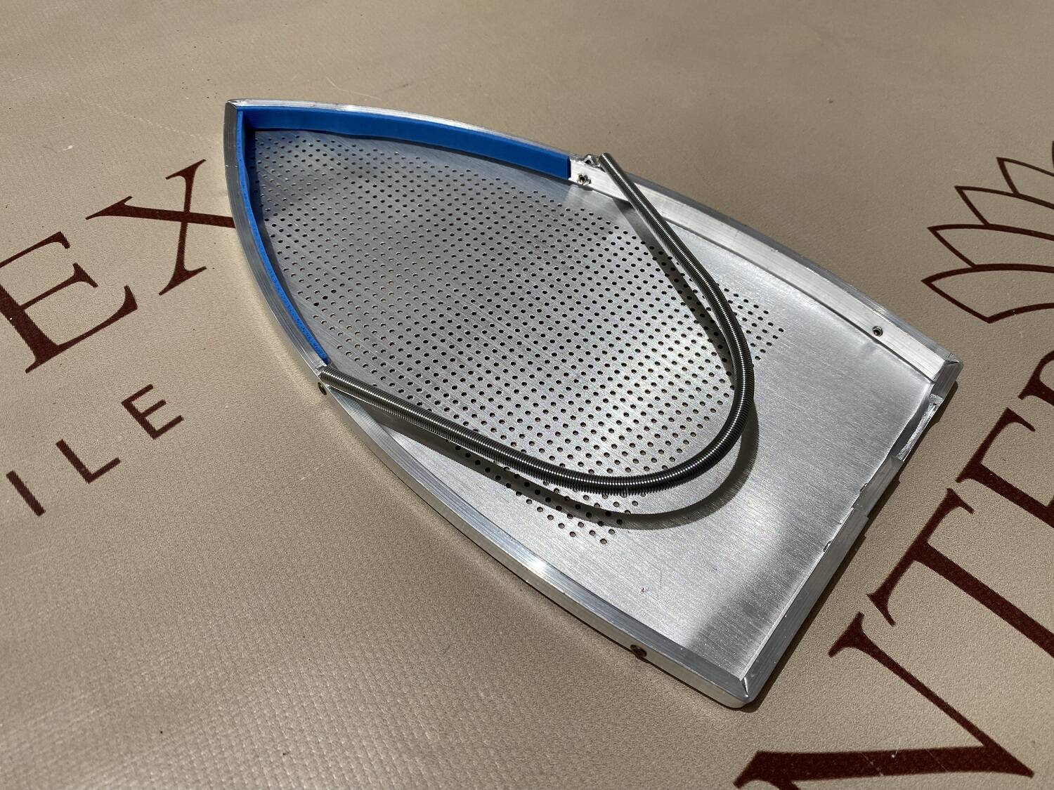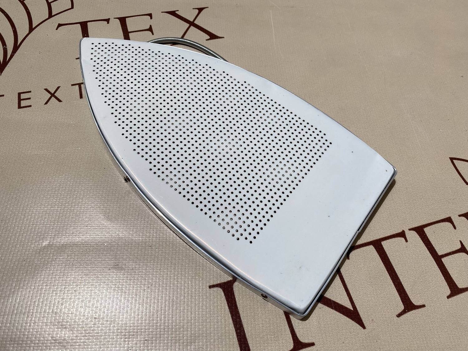 The iron soleplate is a special attachment that attaches to the main surface of the iron to protect fabrics while ironing. Made of heat-resistant Teflon, it prevents overheating and shiny marks on delicate fabrics, including silk, wool, and synthetic fabrics. The soleplate also protects the fabric from burning and reduces the risk of sticking. This accessory significantly extends the service life of the iron, helping to keep it clean and easy to use, especially when ironing delicate materials and decorated items.