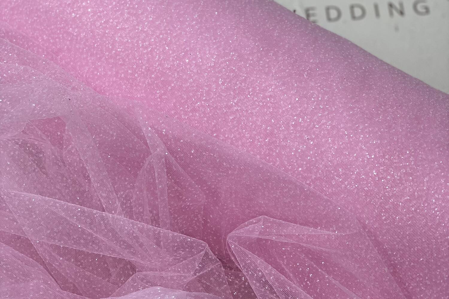 Glitter is a decorative material that gives products a sophisticated and festive look. This fabric consists of a fine mesh on which small sparkles are applied to create a shimmering effect. This material is ideal for making festive costumes, accessories, decor and trimmings. It is often used to create dresses for special occasions, wedding decorations, as well as for interior decoration or gift wrapping. The glitter mesh is light and airy, which makes it popular in the clothing industry.