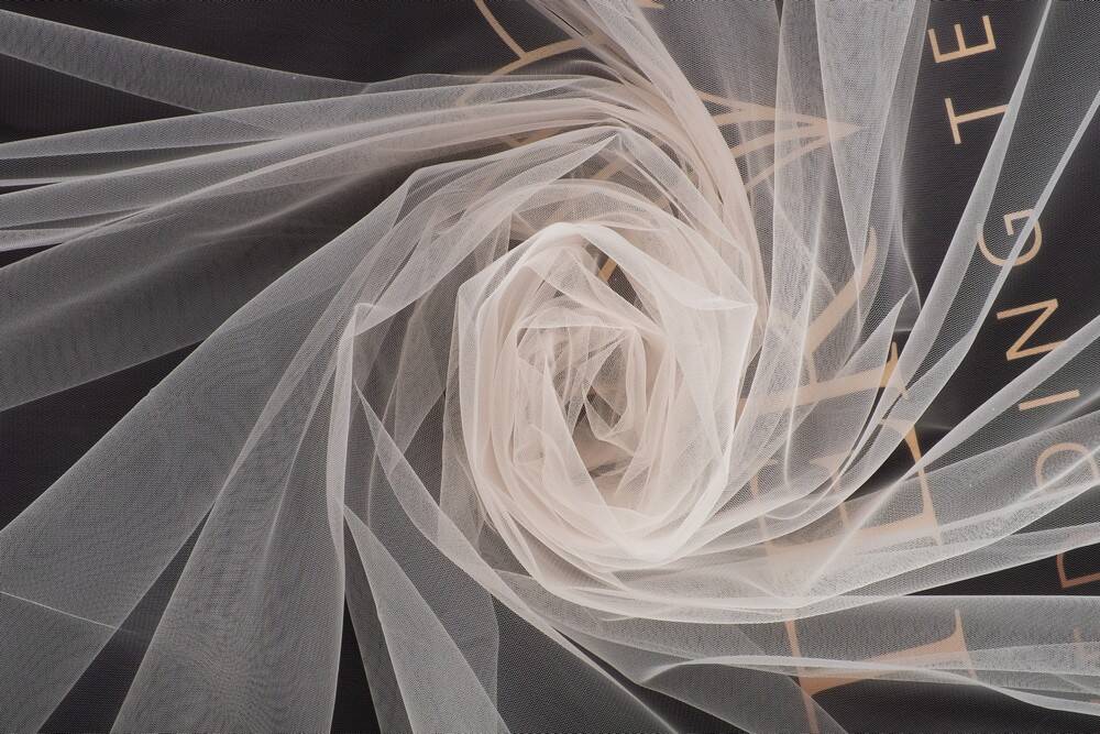 Soft euromesh of synthetic origin with a monochrome, slightly glossy surface. Non crumple, easy to dry and perfectly breathable, due to its woven structure, has a netted mesh. The width of the fabric is slightly springy. Used for sewing piping for wedding and evening dresses.