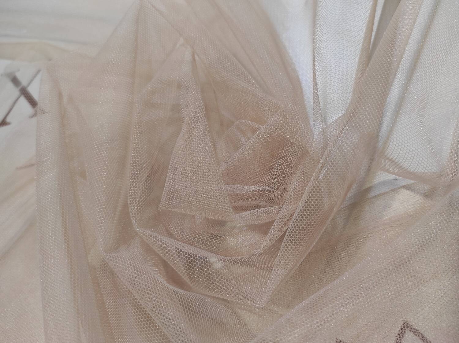 Pronovias mesh is characterized by lightness, transparency, and softness, which makes it popular in the production of wedding and evening dresses, as well as in decorative elements. The material does not wrinkle and is well ventilated due to its mesh structure. It provides ease of sewing and adaptability to different designs. It is used to create corsets, skirts, veils and decorative elements, suitable for decorating halls, arches and other festive decorations, and serves as the basis for various embroidered patterns. It is a versatile material that combines aesthetic and practical properties, which makes it indispensable in many areas of the textile industry.