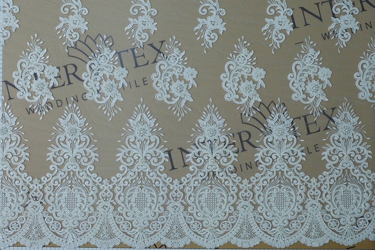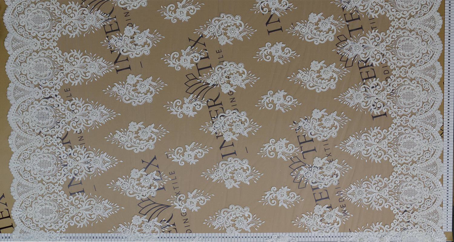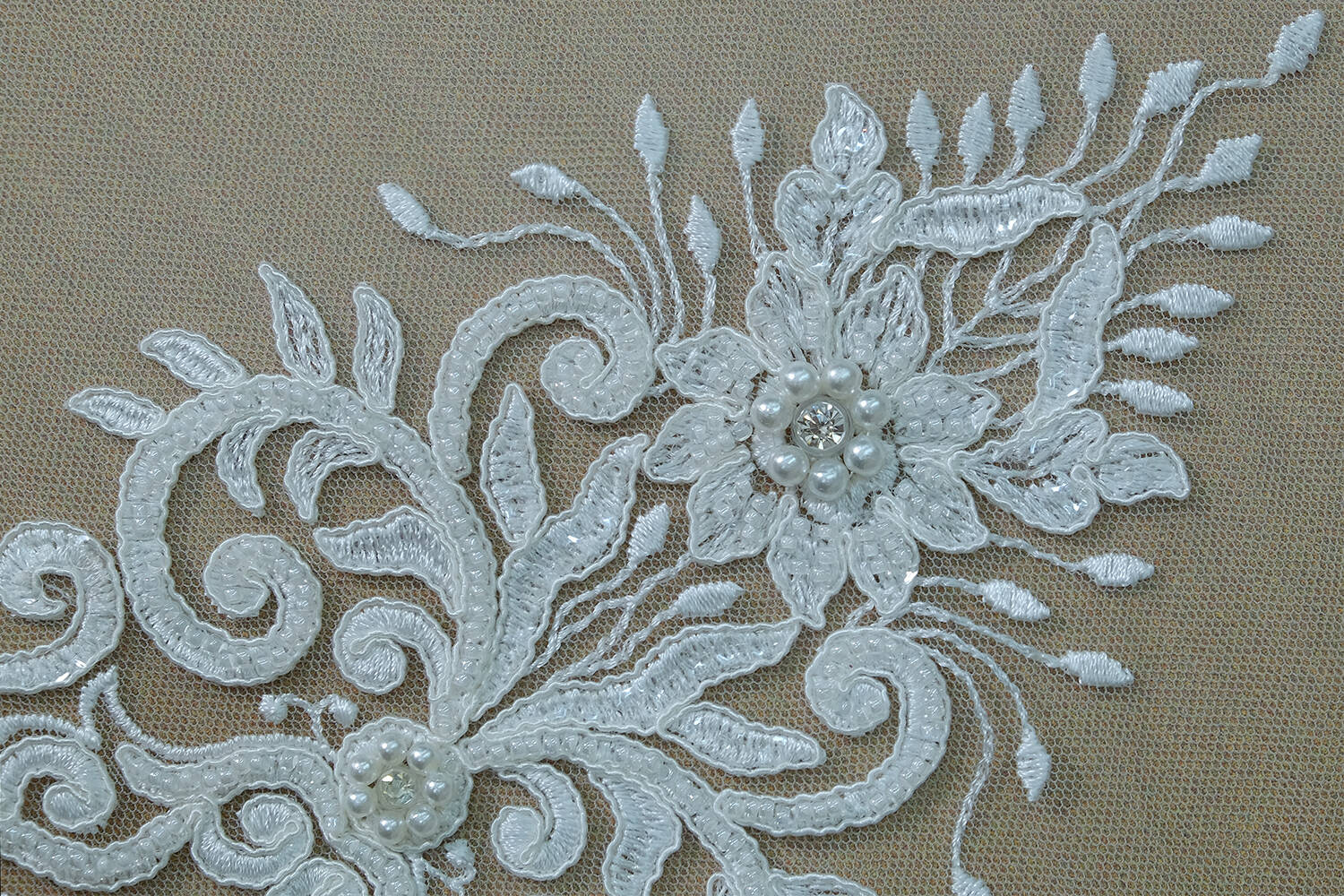 Embroidered lace fabric is a delicate design made on a strong mesh. This material contributes to the lightness and solemnity of the bride's image. The unique pattern and sparkle of pearls and beads will perfectly emphasize all the advantages of a festive outfit. The material is perfect for creating impressive wedding or evening dresses, corsets and skirts.