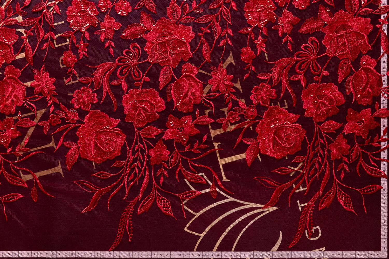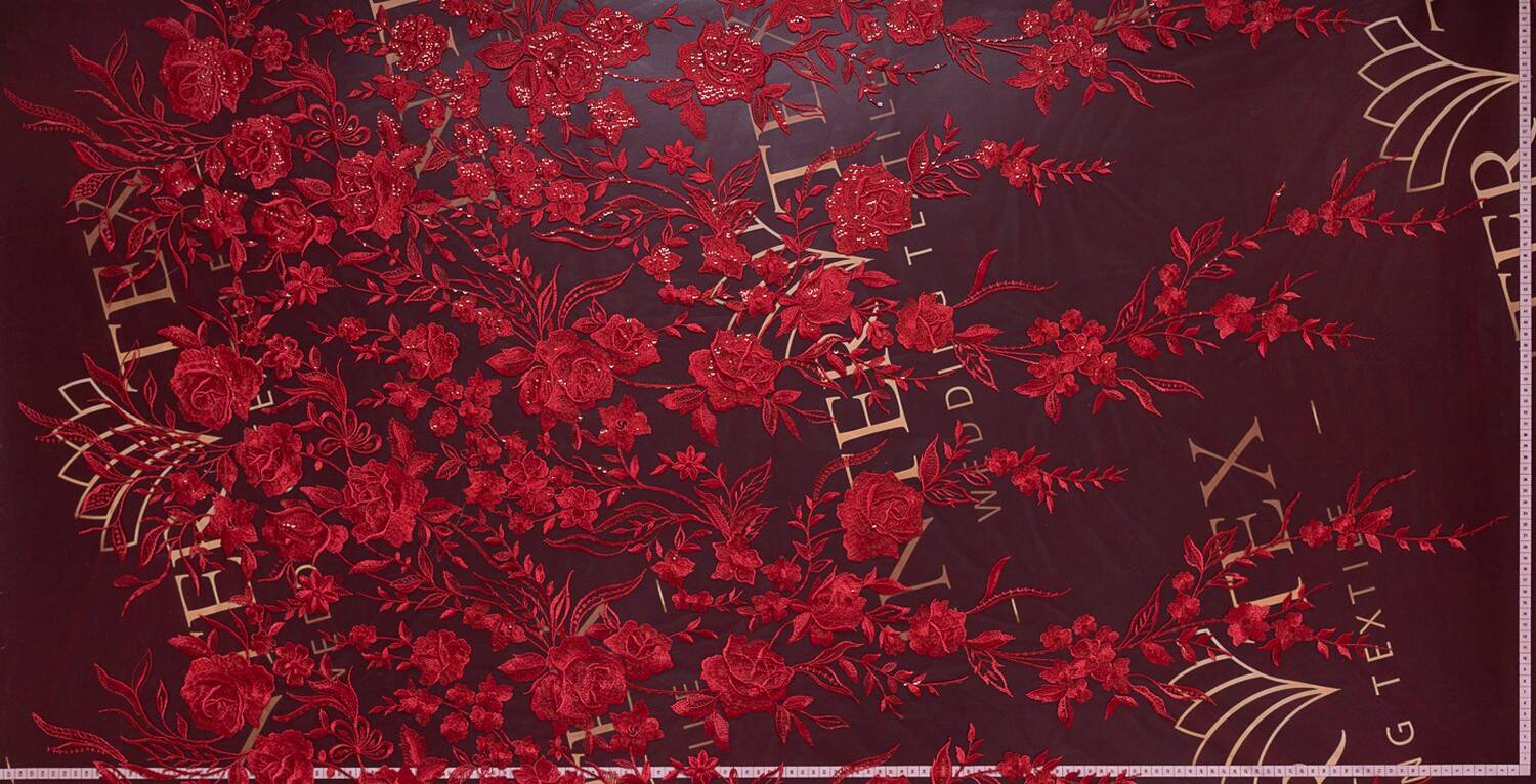 Lightweight, transparent Euro mesh with rose embroidery and sequins that creates an expressive design. When draped, the fabric forms a light shape, behaves plastically in the product, and can be easily divided into fragments. It is used for sewing evening and formal wear, theatrical and stage outfits, and can also be used as a decor.