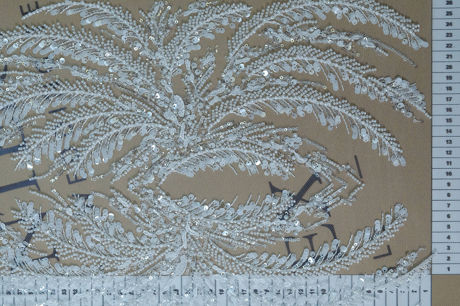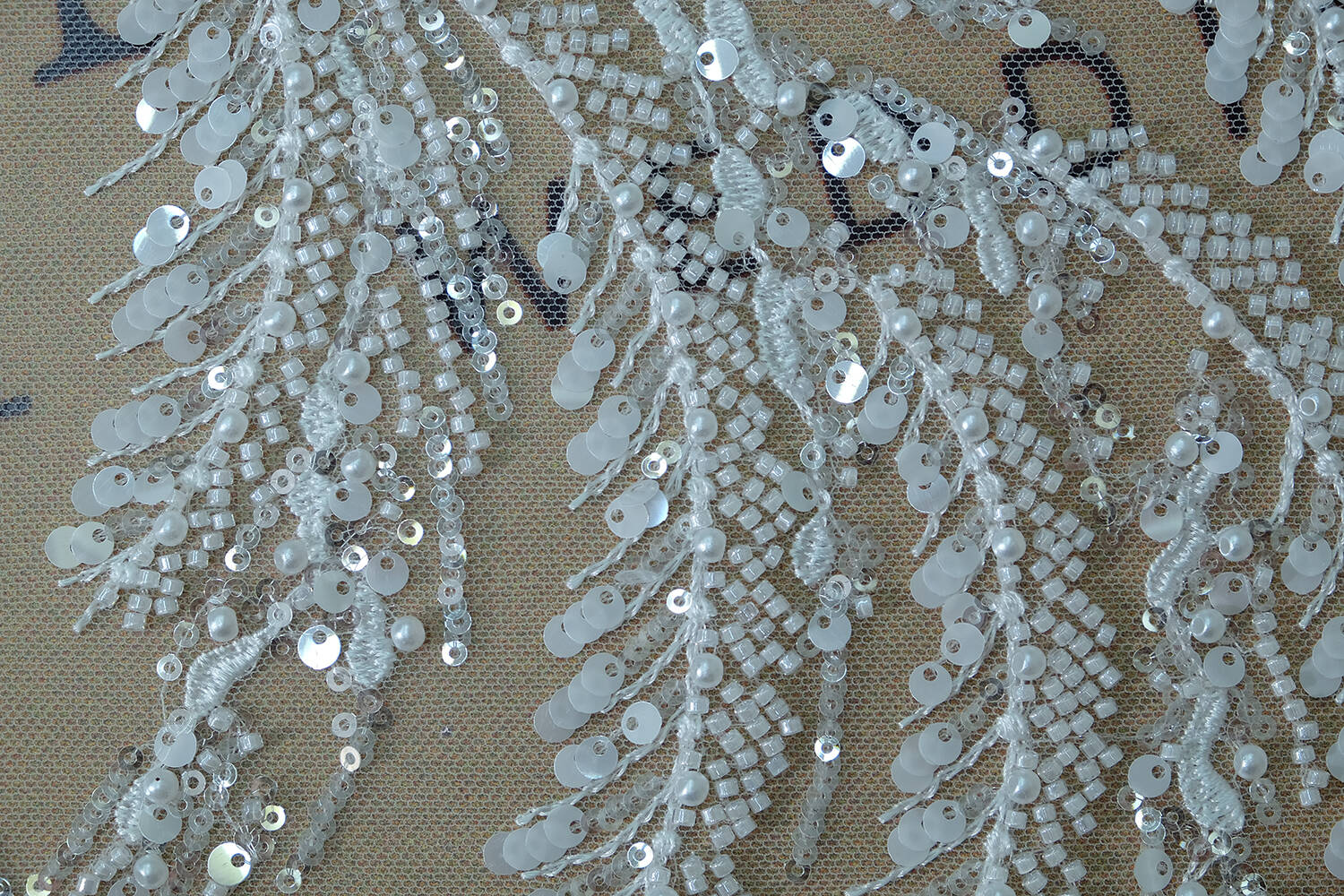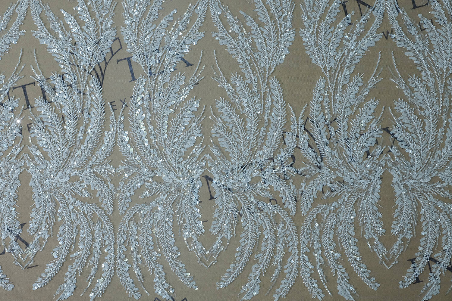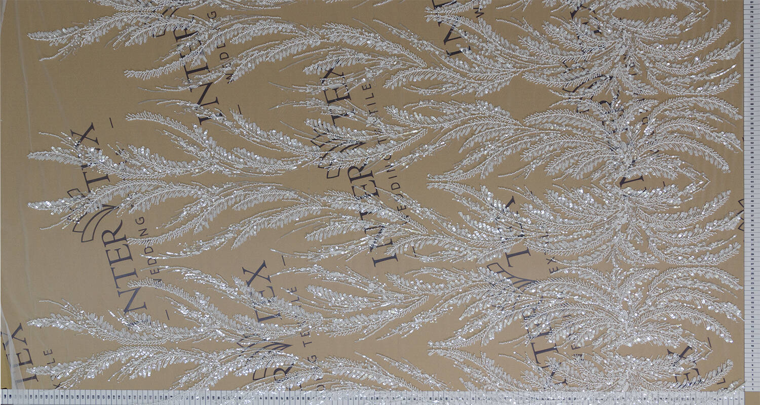 An embroidered lace fabric is an exquisite fabric on which a pattern is made using sewn or attached decorative elements such as beads, sequins, pearls, etc. They add textural depth to the fabric and create spectacular details, making the lace look particularly sophisticated and rich. Embroidered lace is often used to make wedding dresses, evening gowns, and to decorate interior items.