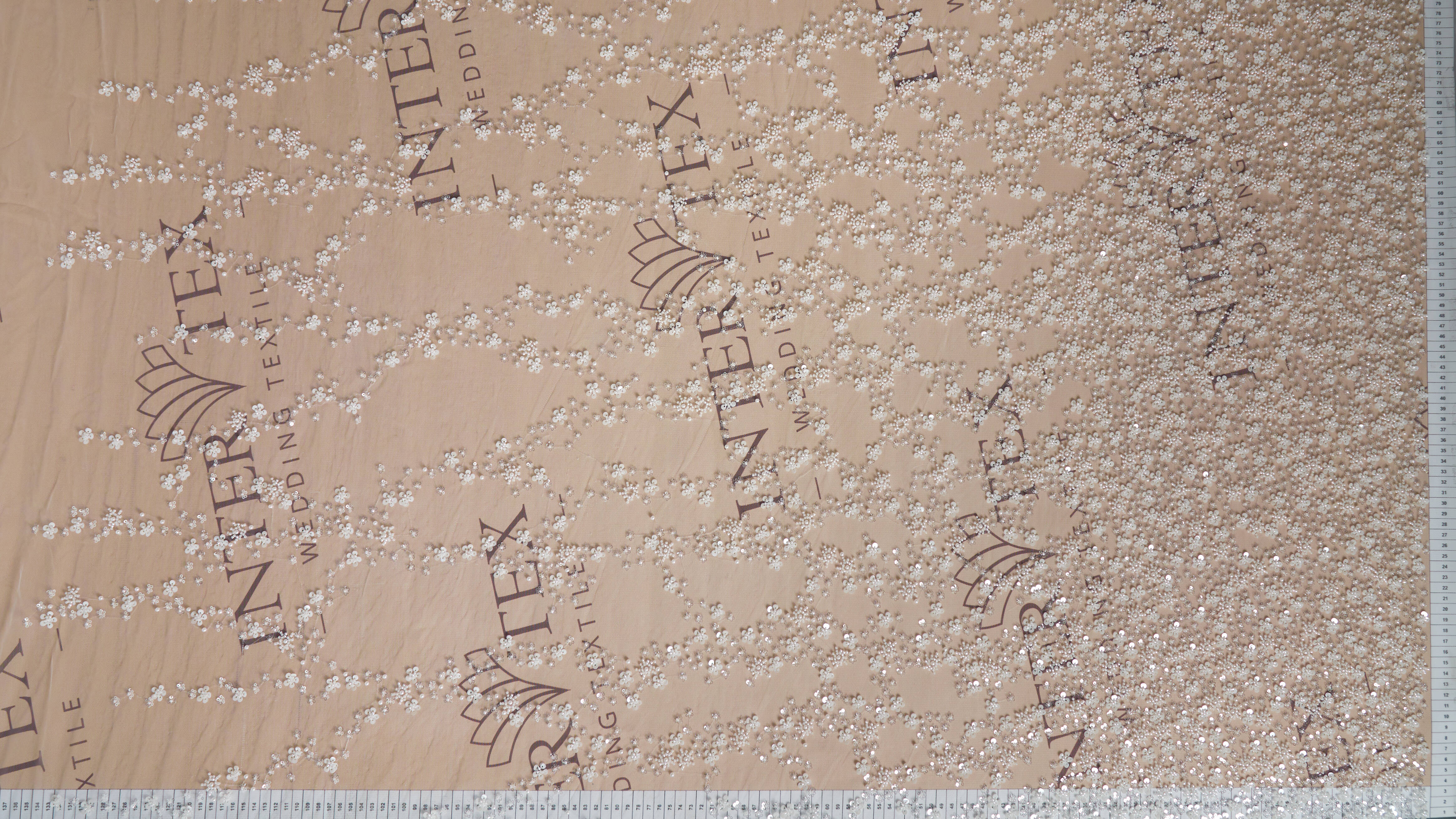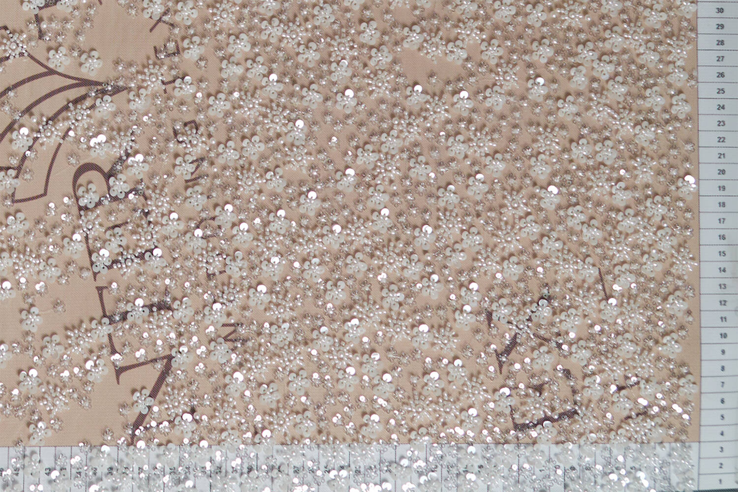 An embroidered lace fabric is an exquisite fabric on which a pattern is made using sewn or attached decorative elements such as beads, sequins, pearls, etc. They add textural depth to the fabric and create spectacular details, making the lace look particularly sophisticated and rich. Embroidered lace is often used to make wedding dresses, evening gowns, and to decorate interior items.