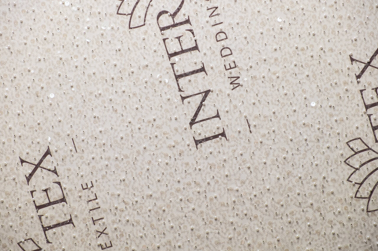 Mesh with pearls, beads, and sequins is a modern, stylish material created artificially. It has translucent properties and high elasticity, resembling a very small honeycomb. There are artificial beads attached to the entire surface of this fabric, which make it incredibly attractive when played with daylight. The material is widely used for the production of women's elegant clothing, such as wedding, evening and prom dresses, skirts, blouses, as well as for creating accessories, to which it adds sophistication and romance.