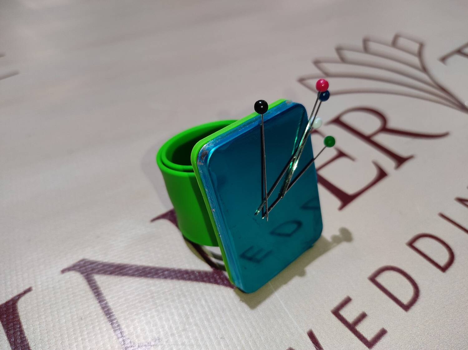 Магнитный браслет-держатель на руку - это именно тот аксессуар, который поможет хранить на месте ваши булавки, иголки, невидимки и другие мелкие металлические предметы. Эта подушечка для булавок не совсем обычная. Ведь иголки к ней прилипают и не теряются. Даже если перевернуть держатель вверх ногами, иголки останутся на своих местах. Размер браслета универсальный, что позволяет комфортно носить его на запястье. Такой магнитный держатель сделает процесс шитья более организованным и быстрым - все необходимые мелочи всегда под рукой.