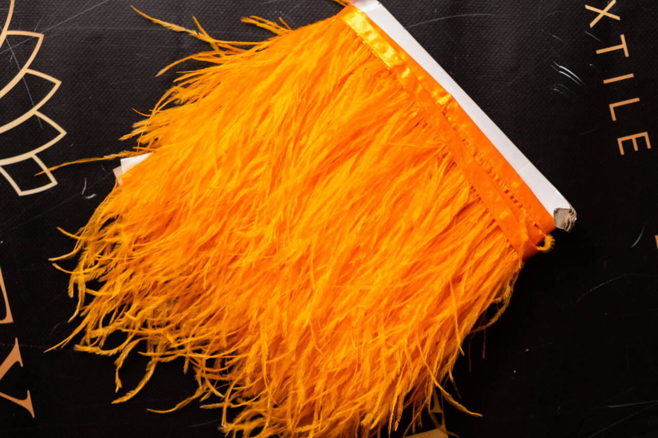 Натуральные окрашенные страусиные перья на ленте. Длина перьев приблизительно 8-10 см. Так как перо - это природный материал, размер, структура, форма могут варьироваться.