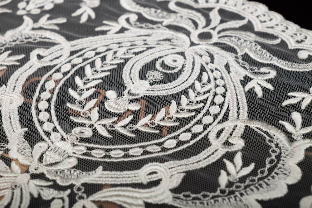 Кружево неразшитое - это вид ткани с изящным узором, у которого нет обрезанных краев. Рисунок напоминает природную красоту с богатыми текстурными деталями, придающими ткани женственности и элегантности. Такое кружево идеально подходит для декора изысканных изделий, таких как свадебные платья, вечерние наряды и другие элегантные предметы одежды, которые выглядят неповторимо и очаровательно.
