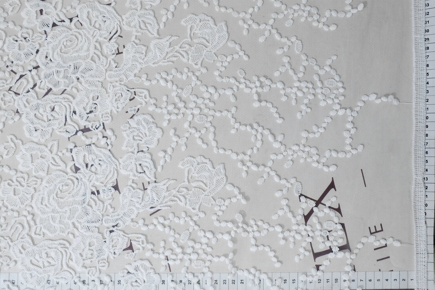 Нерасшитое кружевное полотно - это кружево без каких-либо дополнительных украшений, обычно из тонкого материала, имеющего только основную кружевную структуру. Это полотно имеет утонченный и элегантный вид и часто используется для создания вечерних или праздничных нарядов, а также для декорирования домашнего текстиля. А цветочный узор придает ткани нежности, элегантности и романтического вида.