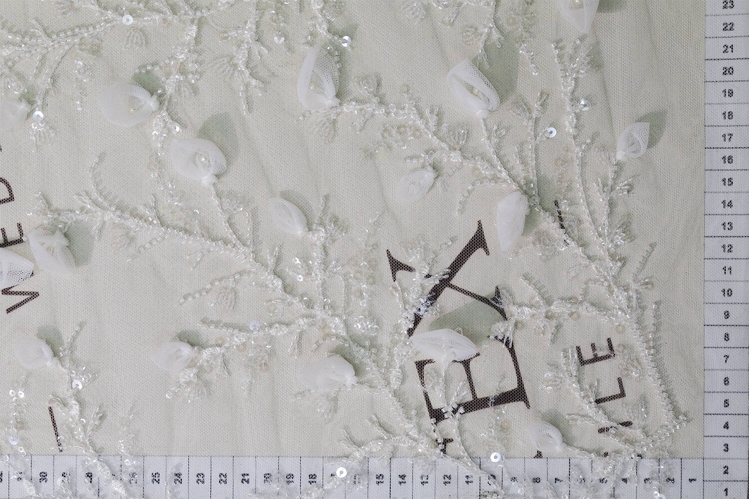 Это настоящая мечта для создания элегантного и изысканного образа! Кружево с 3D эффектом поражает своей текстурой и роскошностью. На нем расположены фатиновые лепесточки и веточки, которые добавляют ткани объема и эксклюзивности. Кроме того, кружевное полотно отмечается сочетанием двух видов бисера и пайеток, что делает его идеальным выбором для создания свадебных и вечерних платьев, аксессуаров или эксклюзивных декоративных изделий.