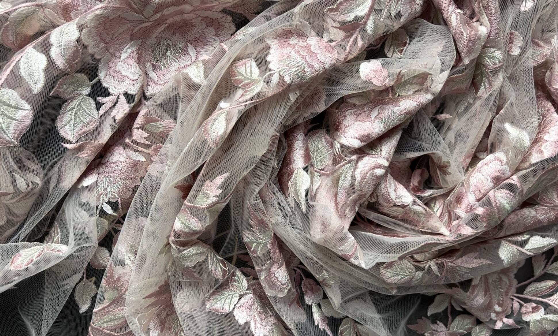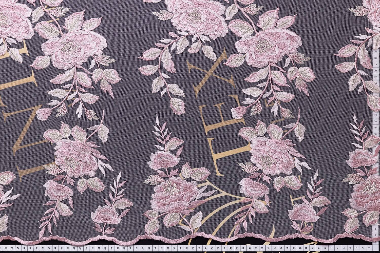 Легкая, прозрачная евросетка с вышивкой, образующая выразительный дизайн. Имеет завершенный обрезной фестон с двух сторон полотна, что позволяет шить одежду без дополнительной обработки края низа или рукава изделия. Используется для пошива вечерней и торжественной одежды, театрального и сценического наряда, а также может быть использована в качестве декора.