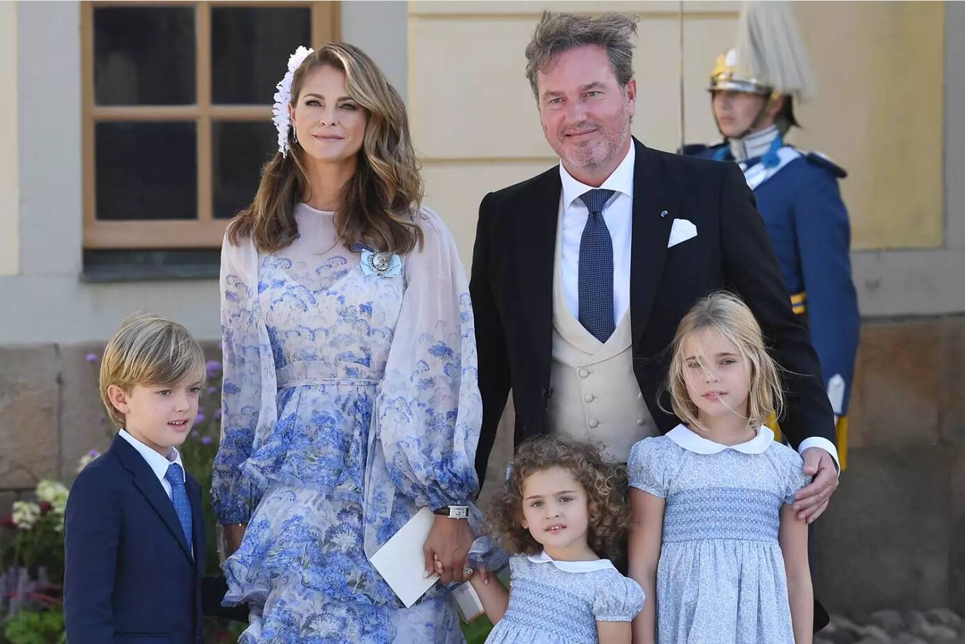 А вот несколько лет спустя Мадлен надела платье из органзы принт. На фото принцесса со своими детьми и мужем.