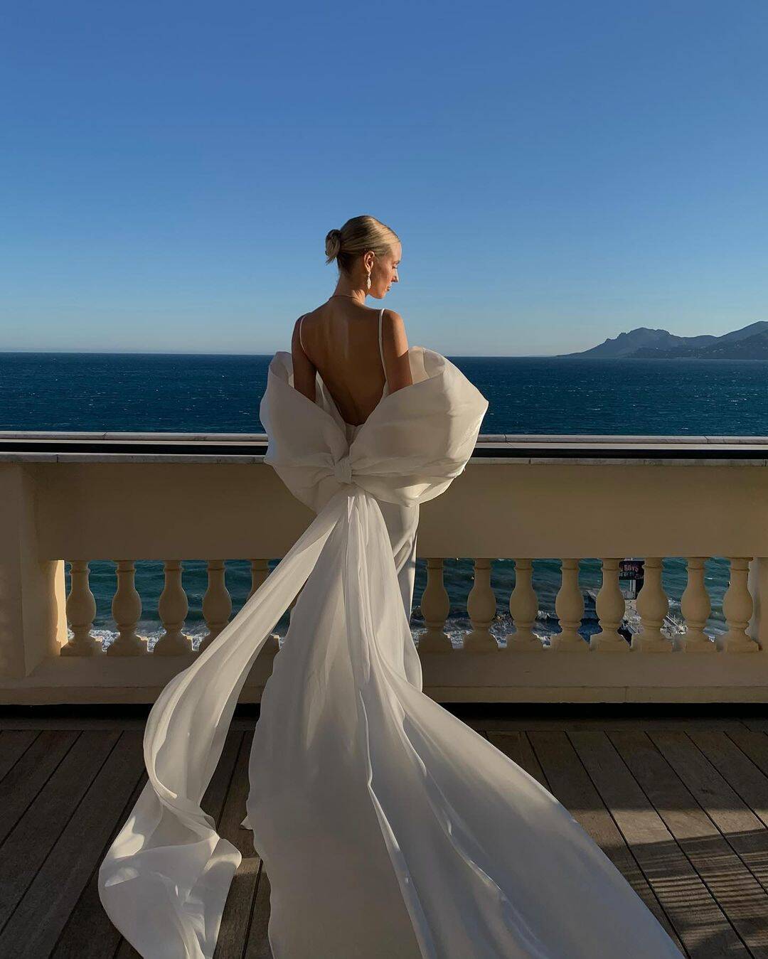 А немецкий инфлюенсер Леони Ханне, за которой в Instagram следят почти 5 миллионов человек, в 2024 году появилась на каннской красной дорожке в потрясающем белоснежном платье украинского свадебного бренда Milla Nova. На создание только банта было потрачено 20 метров нежнейшей органзы.