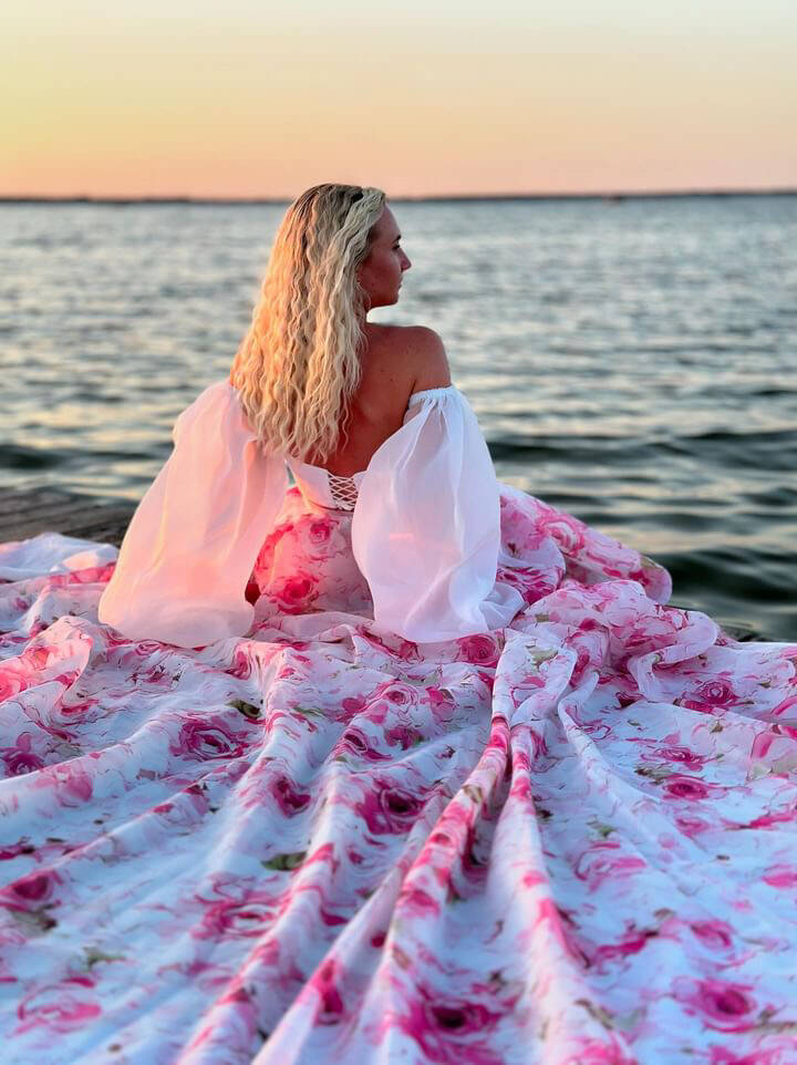 Принтованная органза добавляет уникальности и изысканности свадебным нарядам благодаря своей способности создавать объем и добавлять нежности образу невесты. Печатные узоры дополняют стиль платья. Это делает невесту еще более особенной в ее особенный день.