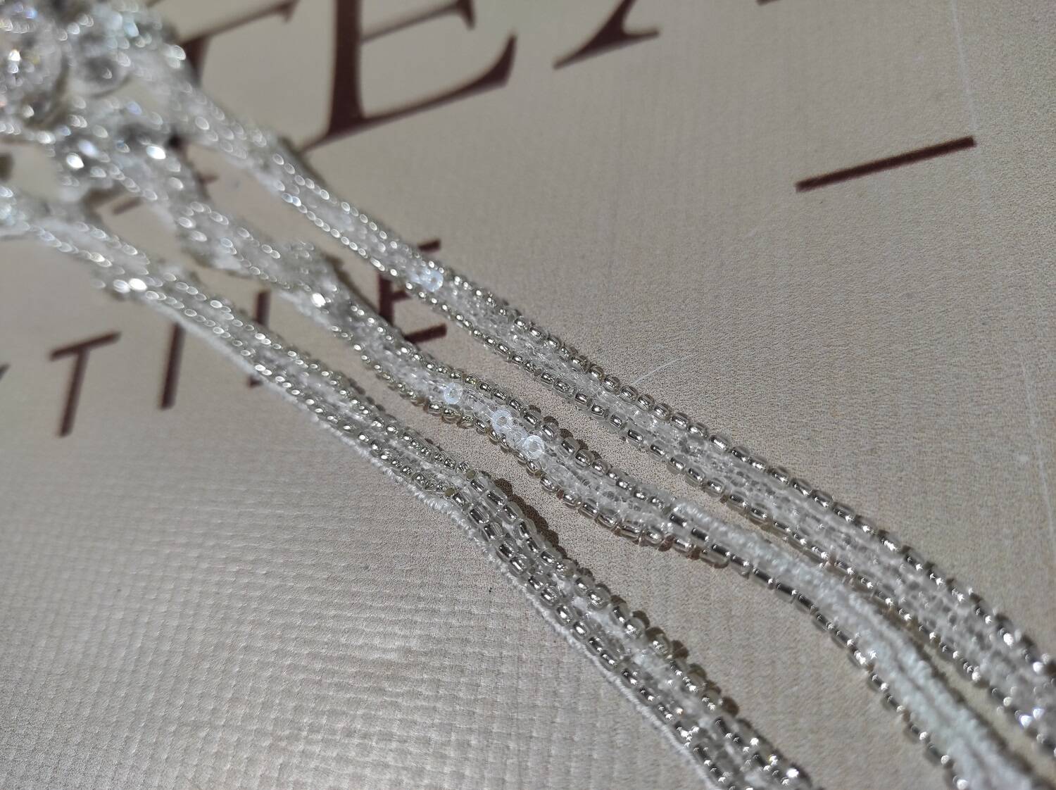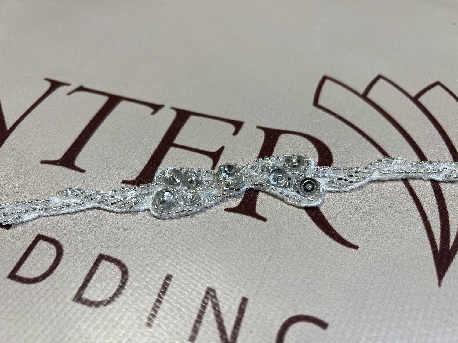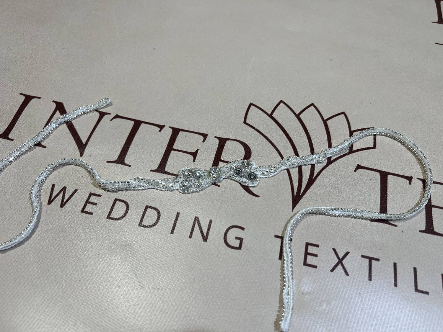 Поштучный расшитый пояс в молочном цвете с серебром предназначен для акцентирования талии в свадебных и вечерних образах. Его центральная часть отличается изящным декором: форма, похожая на раскрытые крылья, напоминает бабочку, что придает аксессуару еще большей элегантности. Блестящие пайетки и мелкий бисер создают изысканный и мерцающий эффект. Это не только визуально привлекательно, но и символизирует легкость и грацию. Такой поясок также может стать стильным элементом для украшения аксессуаров или сценического наряда.