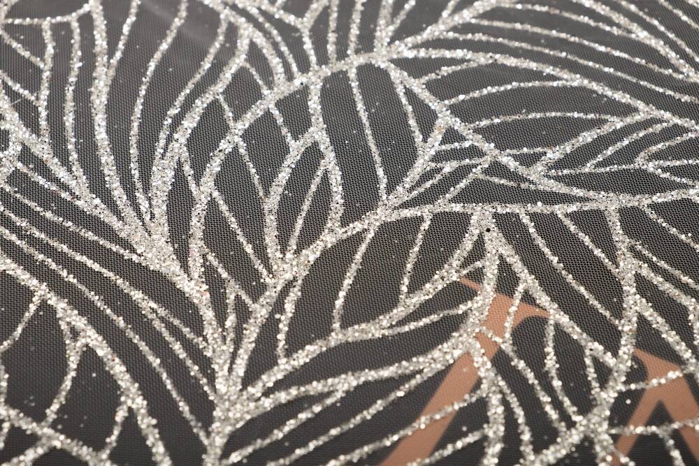 На качественной евросетке нанесен узор, который сияет блеском высококачественного глиттера. Этот узор прекрасно смотрится как на солнце, так и при искусственном освещении, и ткань легко драпируется, выкладывается в складки и не мнется. Шикарно смотрится в пышных юбках, как в длинных, так и в коротких. Даже небольшой элемент из этой сетки украсит любой наряд!
