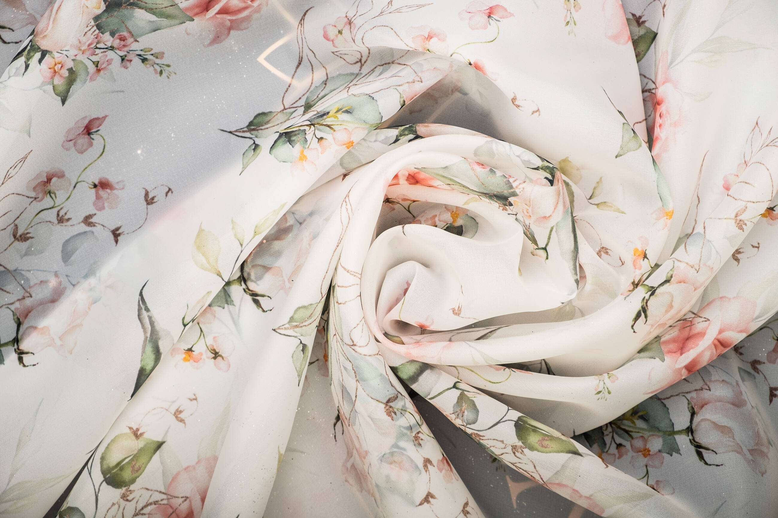 Органза принт - это легкая, воздушная, полупрозрачная ткань, на которую был нанесен принт или рисунок. Часто используется для изготовления вечерних платьев, декоративных изделий, а также для декорирования интерьеров. Поскольку она легкая и эфирная, органза создает воздушный и элегантный вид в изделиях.